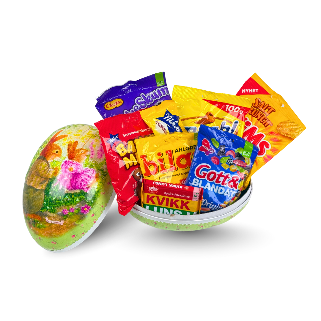 Påskeegg 15cm med smågodt og innpakkede sjokoladebiter