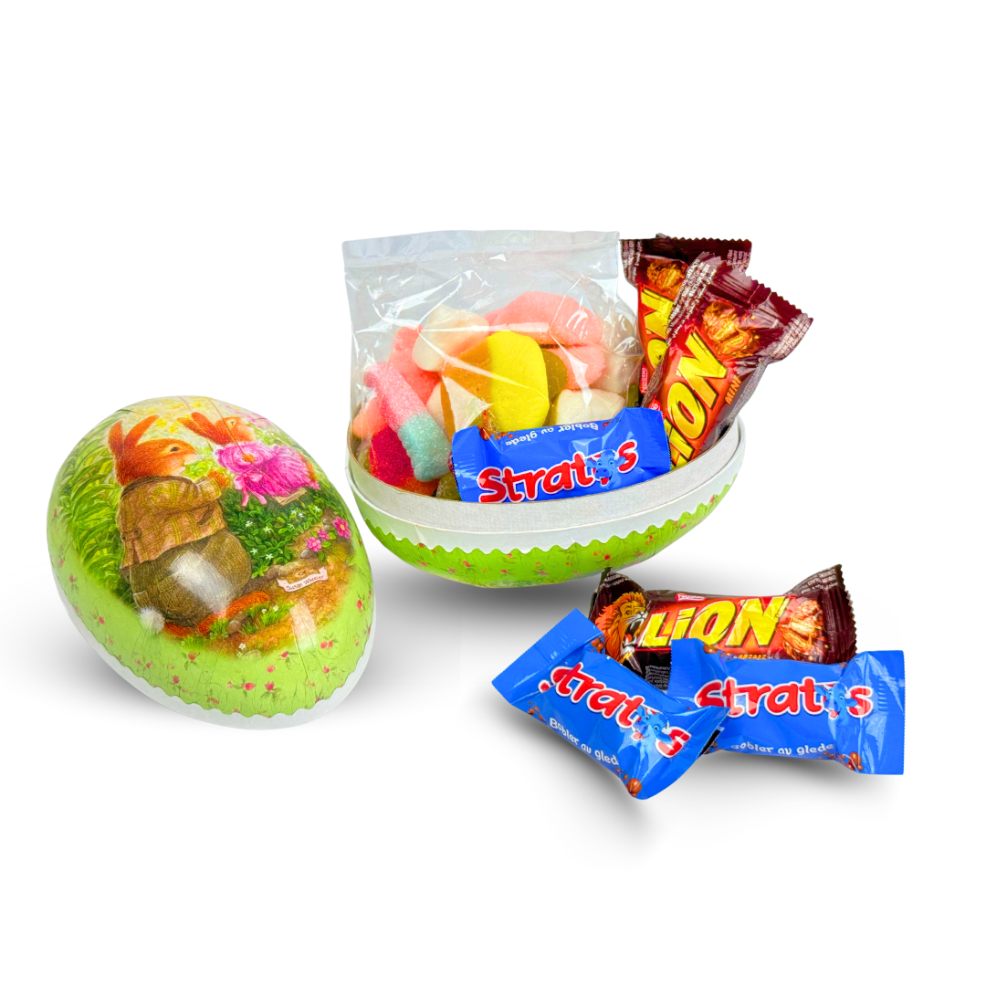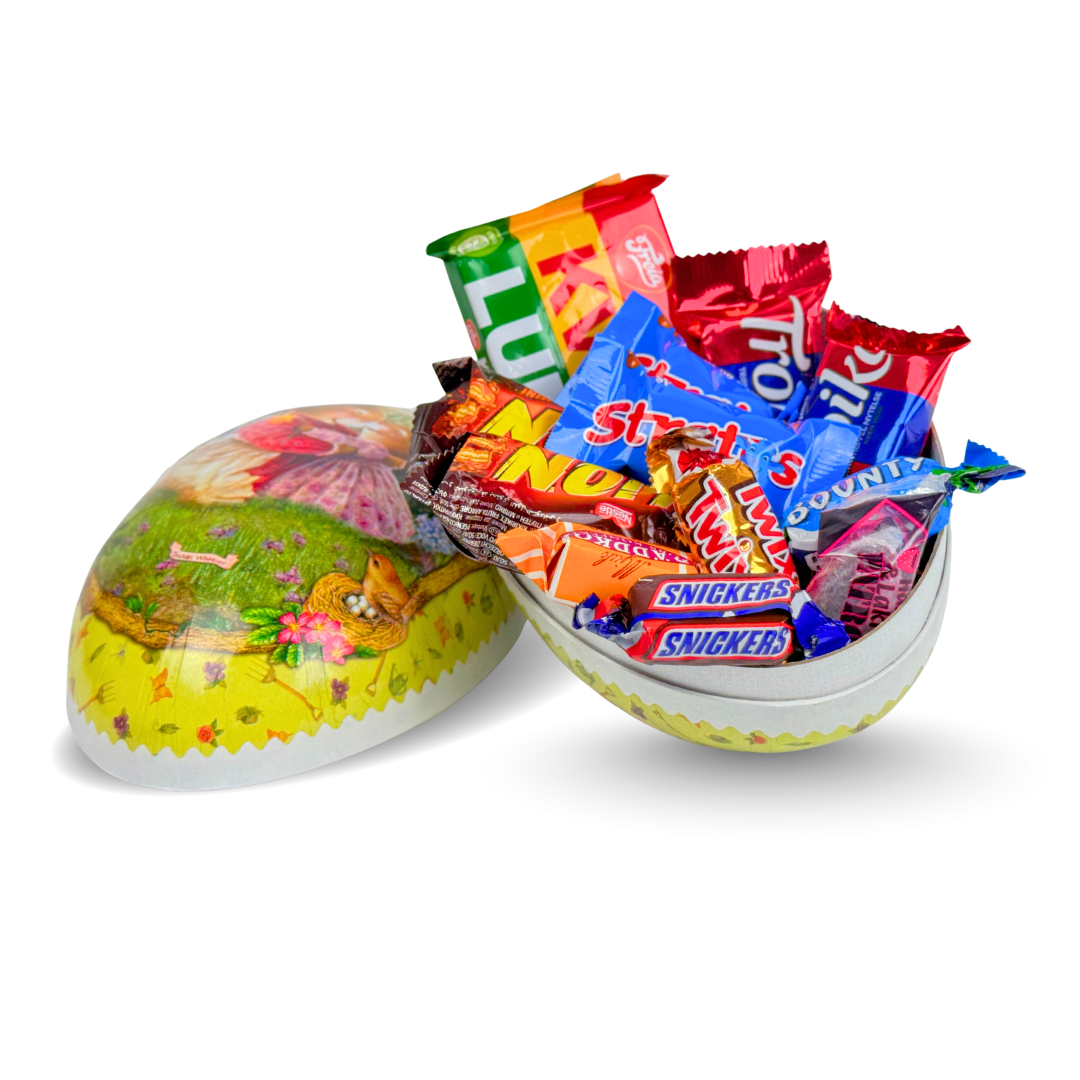 Påskeegg 15cm med smågodt og innpakkede sjokoladebiter