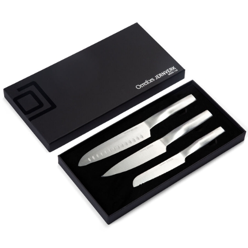 Det komplette knivsettet fra Orrefors Jernverk. Her har vi samlet alle knivene som er et "must" på kjøkkenet. Du får en kokkekniv, en japansk kokkekniv og en tomatkniv av høyeste kvalitet. Leveres i en fin gaveeske, og er en utmerket gave.