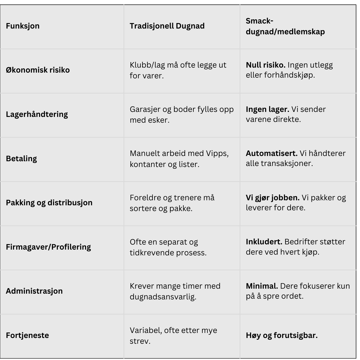 Sammenligningen: Tradisjonell dugnad vs. Smack-modellen