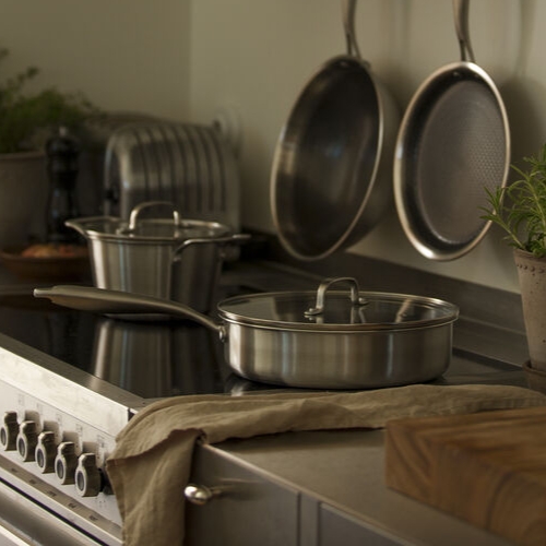 Et av kjøkkenets mest brukte redskaper, og derfor verdt å velge med omhu. Denne gryten i rustfritt stål med keramisk non-stick er slitesterk, jevn i varmefordelingen og laget for å vare lenge.