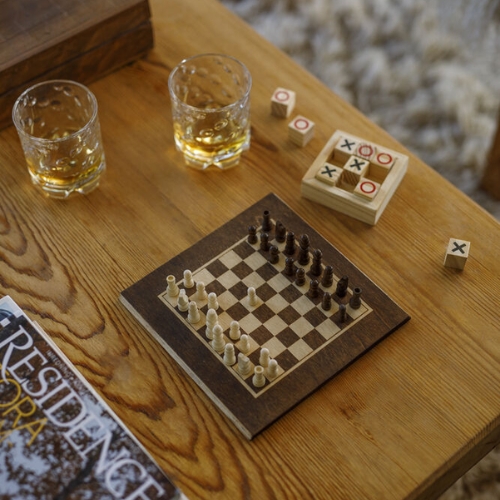 Et klassisk spill fra Lord Nelson med sjakk og tre på rad, pluss to snurrende glass som gjør spillet enda morsommere. Lett å ta med seg, enkelt å ta frem og morsomt for alle aldre.