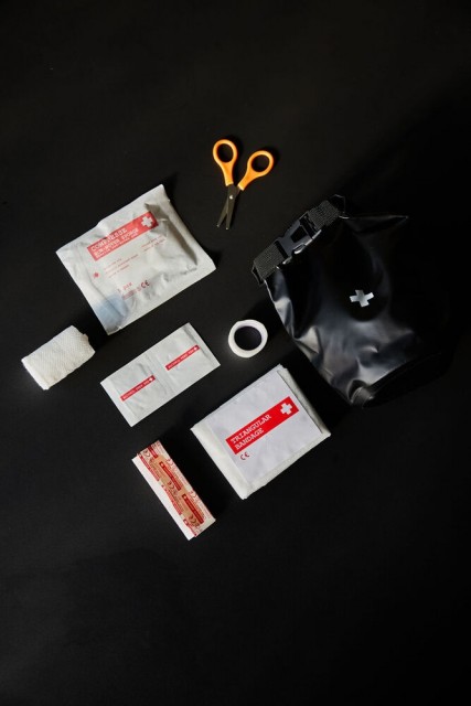 Liten og praktisk vanntett veske med førstehjelpsutstyr. Topplokket rulles opp og settet blir lite og enkelt å ta med seg på båten, i skogen, på reisen osv. Settet inneholder: Saks Gasbind Plaster Sårvask Kompress Fatle Sårteip